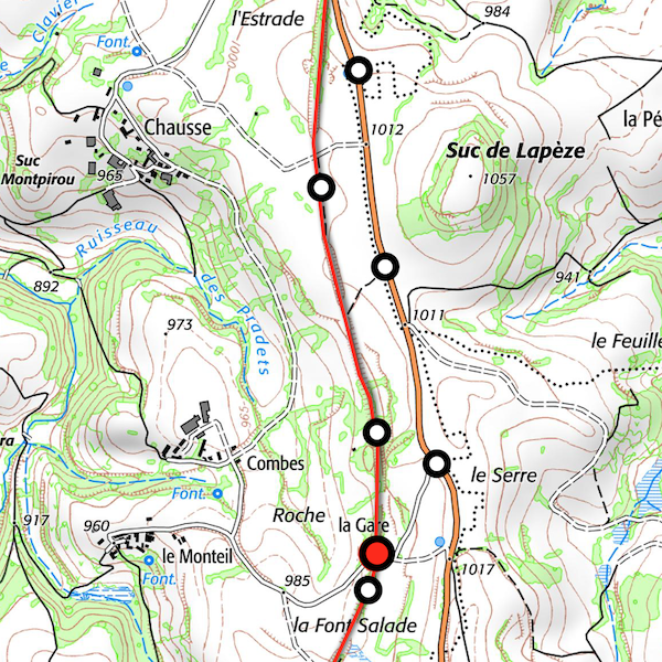 ligne de Brioude à Saint-Flour is a former railroad line in the Auvergne which opened in 1908 and closed in 1954. Over five days I hiked the entire 45-kilometer route, including a very scary walk through one of the tunnels!